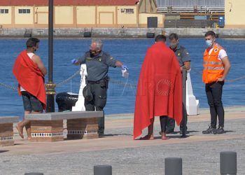 Nueve varones marroquíes han sido atendidos esta madrugada en el muelle de España, en Ceuta, tras haber sido localizados en ...