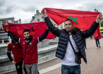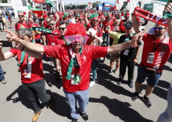 Decenas de aficionados marroquíes que se encuentran en San Petesburgo para presenciar el viernes el debut de su selección frente ...