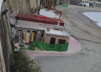 Los trabajos de ampliación de las instalaciones del chiringuito ubicado en la parte central de la playa del Chorrillo, que ...