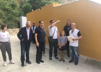 Miembros de la Ejecutiva Regional del PSOE-Ceuta, con Manuel Hernández a la cabeza y el secretario de barriada Juan Gutiérrez, acompañados por el ...