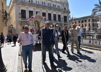 El repique de las campanas marcaba el inicio de la salida de la Virgen de los Remedios, titular de la ...