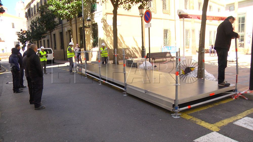 Serán diez palcos y ocuparán el espacio de aparcamientos Los preparativos en la calle Jáudenes, que este año se convierte ...