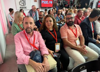 El presidente de la Gestora que dirige al PSOE en Ceuta, Melchor León; Cristina Pérez, como miembro del Comité Federal; ...