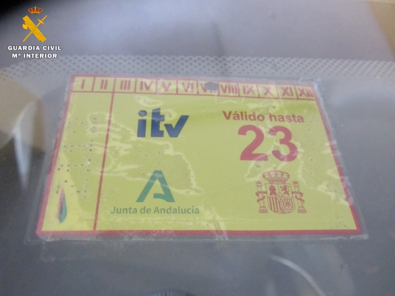 Portaba además una pegatina de la ITV falsa con fecha de caducidad julio de 2023, a pesar de que en la base de datos de la DGT figuraba como caducada el 20 de julio de 2022.