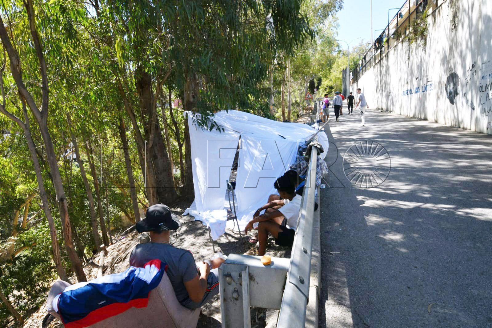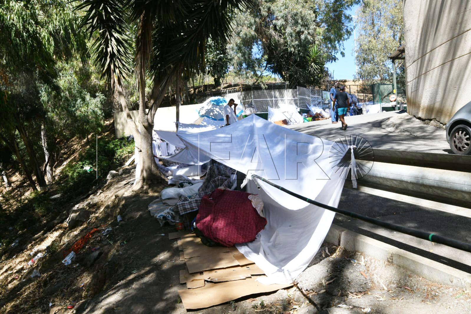 Empezaron ocupando justo la entrada de acceso al CETI, pero ahora ya alcanzan la curva. Toda una hilera de tiendas y mantas por el suelo es la imagen que aporta este centro controlado por el Gobierno de la Nación que lo tenía como un referente modelo.