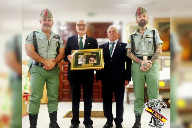 Asimismo, acudió también al acto la Real, Antigua y Venerable Cofradía del Santísimo Cristo de la Vera Cruz y Nuestra Señora de la Soledad de Alhaurín de la Torre (Málaga), que hizo entrega de dos cuadros con las imágenes de sus Sagrados Titulares. Un gesto considerado por el Tercio como una muestra de profundo respeto y agradecimiento hacia la Legión.