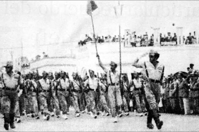 La 2ª Compañía de la XIII Bandera desfilando por las calles de Sidi Ifni, donde va el entonces legionario Antonio Juárez Dávila.