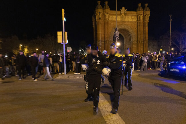 Hacia las 21:00 horas, la concentración degeneró en el lanzamiento de objetos y destrozos de mobiliario urbano. La intervención de la Guardia Urbana de Barcelona y de los Mossos d'Esquadra fue necesaria para dispersar a la multitud y restablecer el orden.