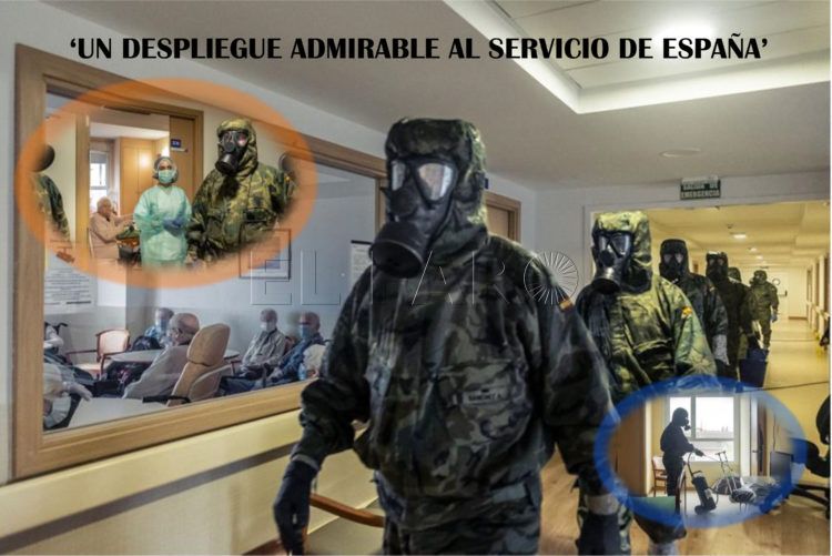 Imágenes como si nos trasegara a otra época inmemorial, como hospitales de campaña o albergues improvisados, hoy se entremezclan con Soldados ataviados de mono blanco, amarillo o verde mimetizado, en aplicaciones escrupulosas de desinfección en estaciones de tren, centros de salud, residencias de mayores, cárceles, parques o vigilancia de centrales nucleares... Un trabajo extraordinario de dedicación exclusiva que no tiene horas ni día, acrisolado con el espíritu de cuerpo como la mejor bandera, en el que irremediablemente el virus, también se ha cebado con este colectivo de mujeres y hombres honrados, que en el cielo ya se revisten de esplendor, al vislumbrar junto a otros tantos, que el destino de la Patria común, permanece indemne.