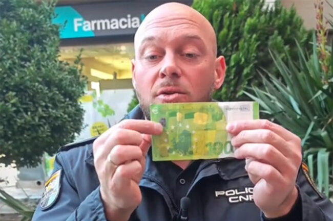 ¿Sabrías detectar un billete falso? Esta es la interrogante que da comienzo a la explicación de un policía nacional que ofrece como clave tres palabras: “toca, gira y mira”.