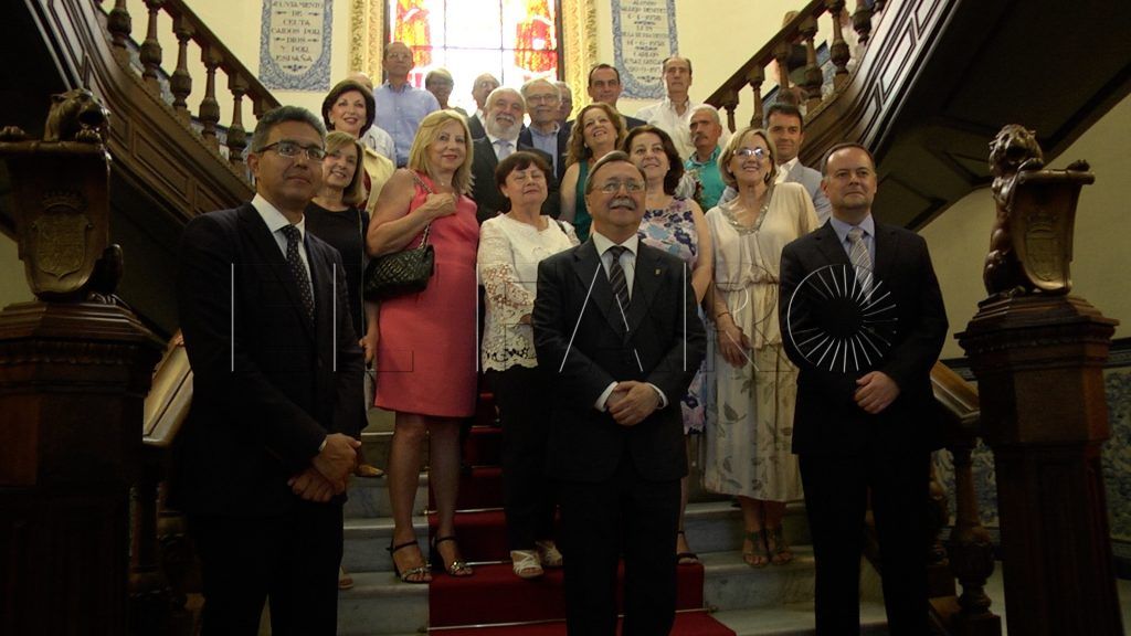 Los homenajeados recibieron la insignia de Magisterio en reconocimiento a su carrera de manos del presidente de la Ciudad, Juan Vivas, el director provincial del MECD, León Bendayán y el consejero de Educación, Javier Celaya.