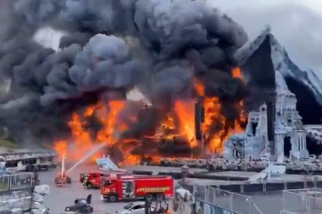 Impulsado por fuertes vientos, el incendio en el escenario principal se propagó rápidamente y destruyó todo en la enorme estructura, cuya construcción tardó más de cincuenta días.