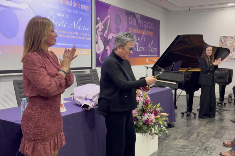 Toñi Palomo ha recibido en la tarde de este jueves el Premio Maite Alascio en su vigésima edición en un emotivo acto que ha tenido lugar en la Biblioteca Pública del Estado Adolfo Suárez, en Ceuta.