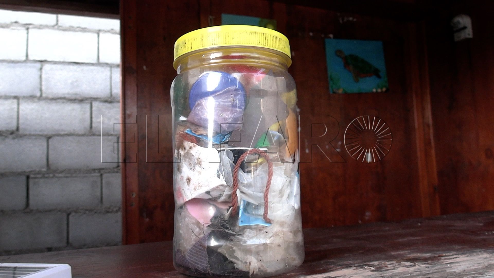 Uno de los principales problemas que enfrentan las tortugas rescatadas es la ingesta de plástico. “El problema que traen casi todas es que tiene flotabilidad positiva. O sea, que han comido plástico, le hacen un tapón y no pueden defecar. Le hacen gases y se quedan arriba. Ya no pueden ni sumergirse,” detalla, mostrando los restos de plástico expulsados por los animales que guarda en un bote.