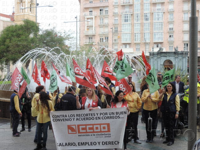 Trabajadores de Correos se han manifestado ante la Delegación del Gobierno para solicitar un incremento del personal de modo que pueda prestarse el servicio postal universal que la entidad está obligada a cumplir los cinco días de la semana.