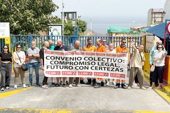 Ya lo anunciaron y no hablaban en vano. Respaldados por Comisiones Obreras (CCOO), trabajadores de la Planta de Transferencia de Residuos de Ceuta, gestionada por Urbaser, se han concentrado a las 12:30 horas de este martes, a las puertas de estas instalaciones ante lo que consideran "un estancamiento del convenio por una falta de seguridad jurídica por parte del Gobierno local".