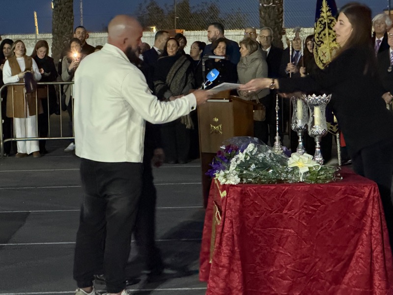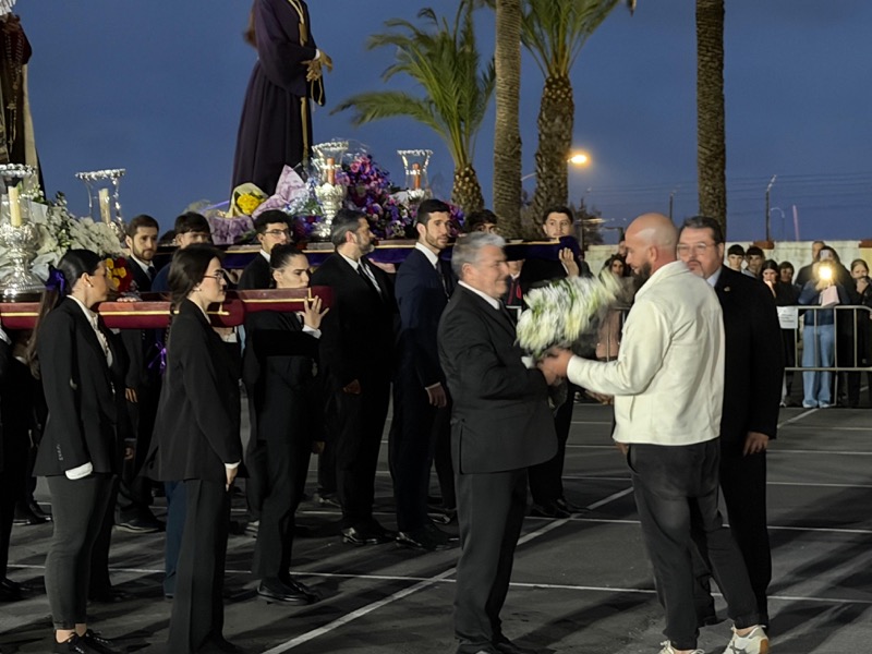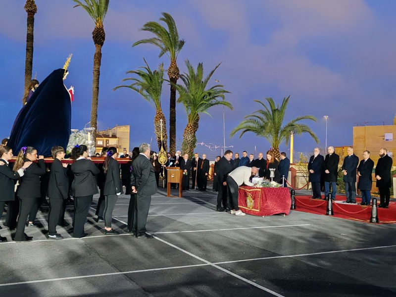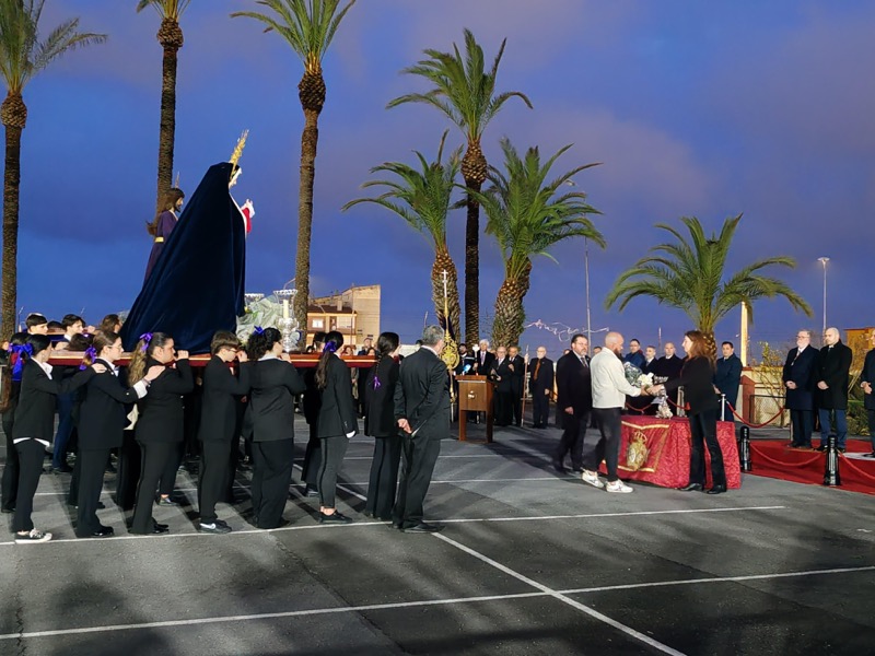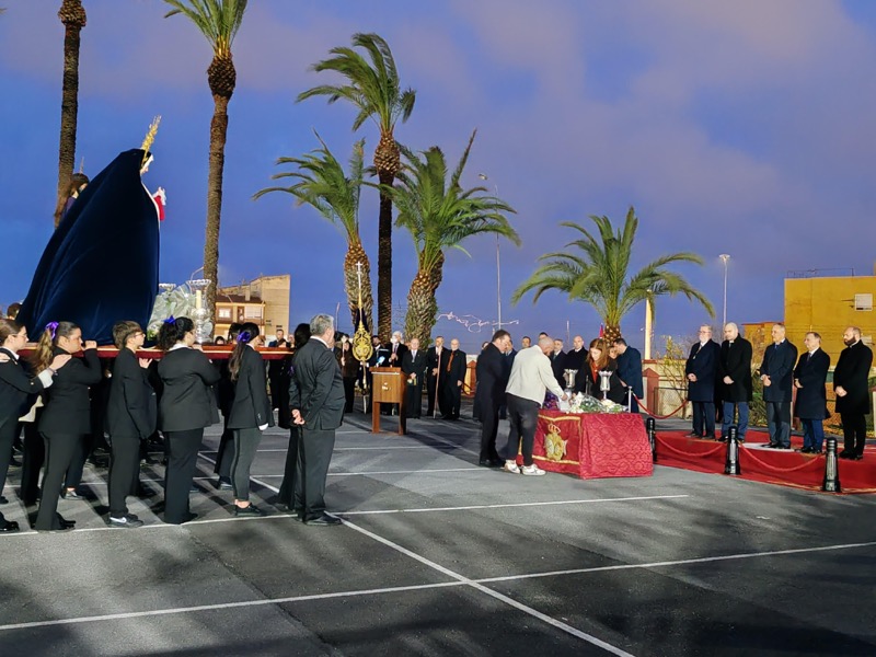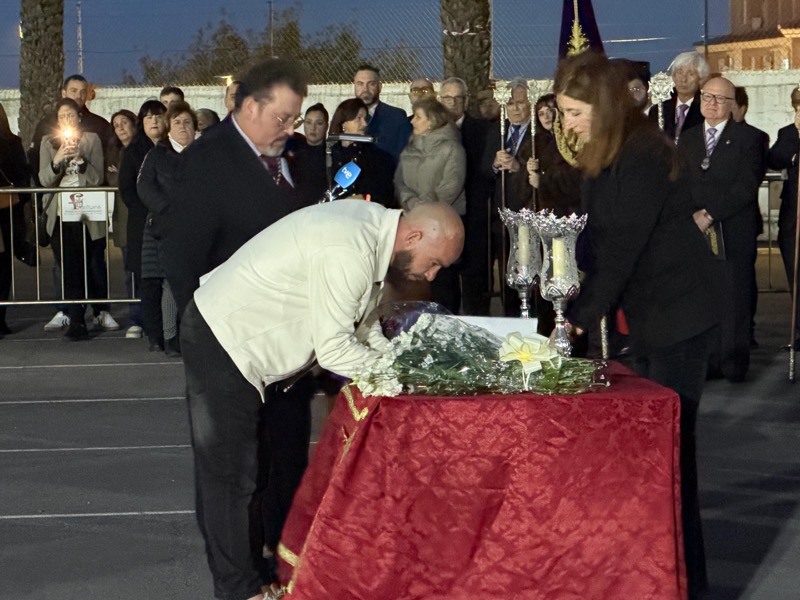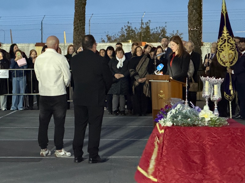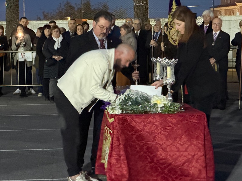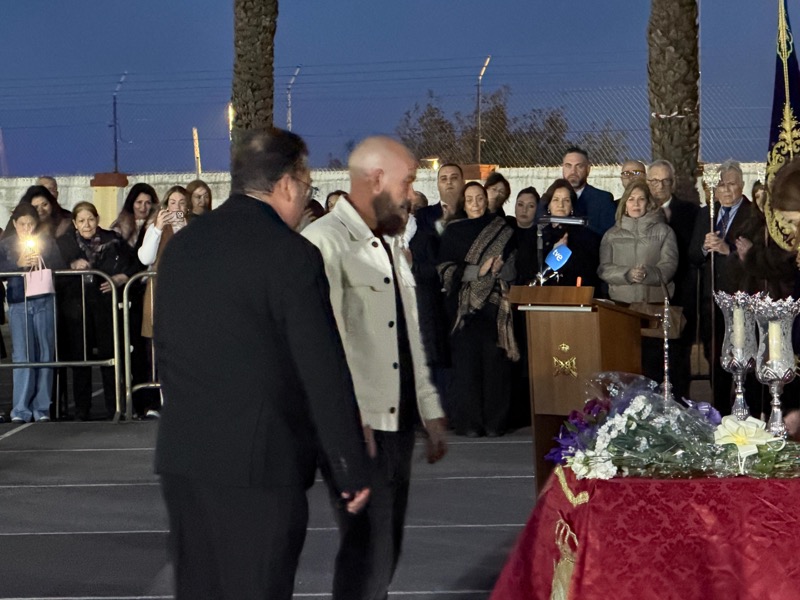 Tras esto, el preso ha hecho entrega de un ramo de flores al Cristo de Medinaceli y otro a Nuestra Señora de los Dolores y ha continuado junto a ellos el resto del recorrido.