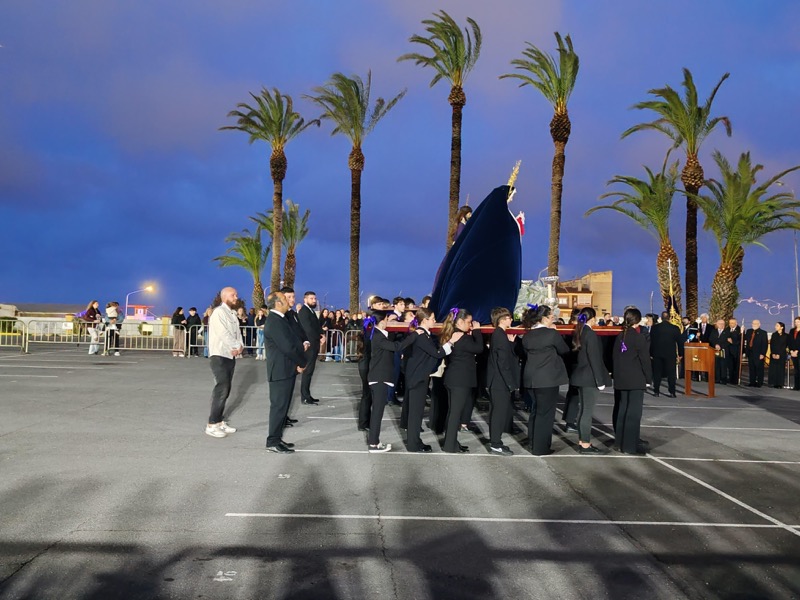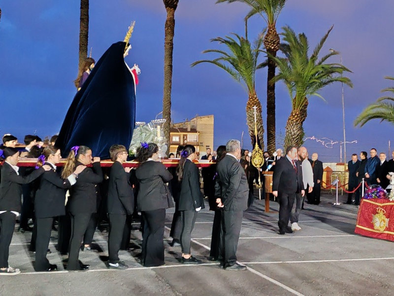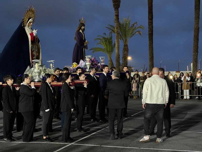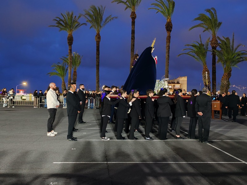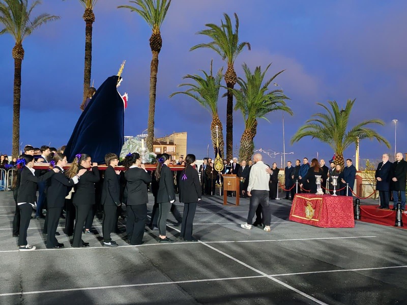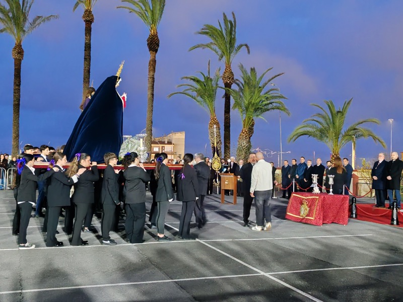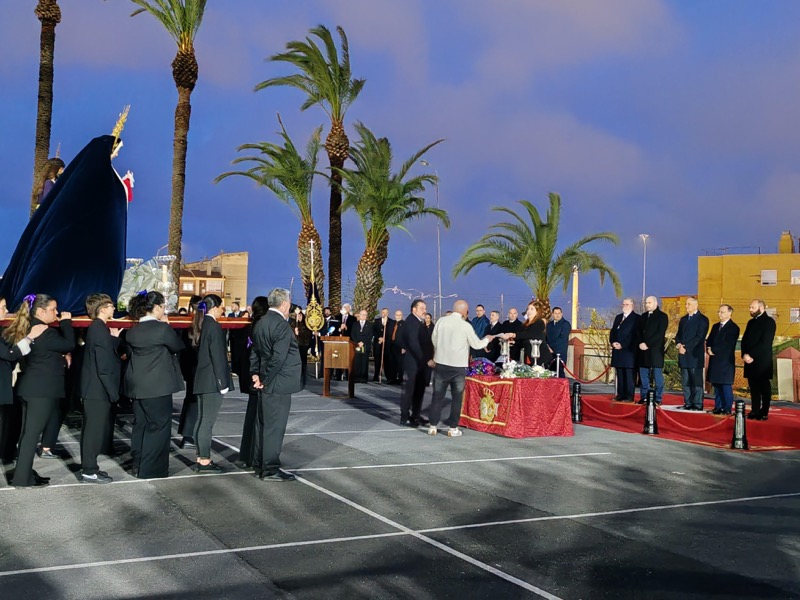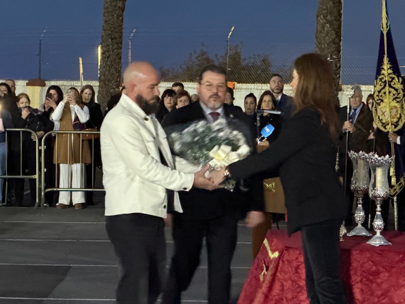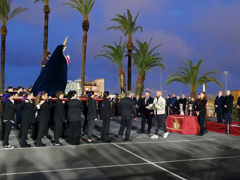 Tras esto, el preso ha hecho entrega de un ramo de flores al Cristo de Medinaceli y otro a Nuestra Señora de los Dolores y ha continuado junto a ellos el resto del recorrido.