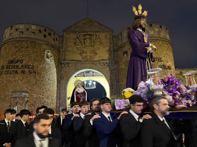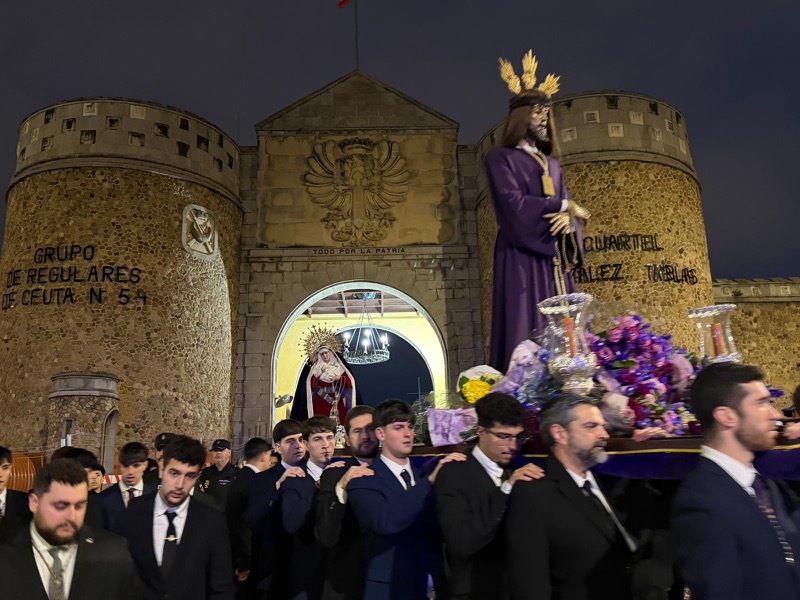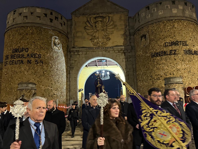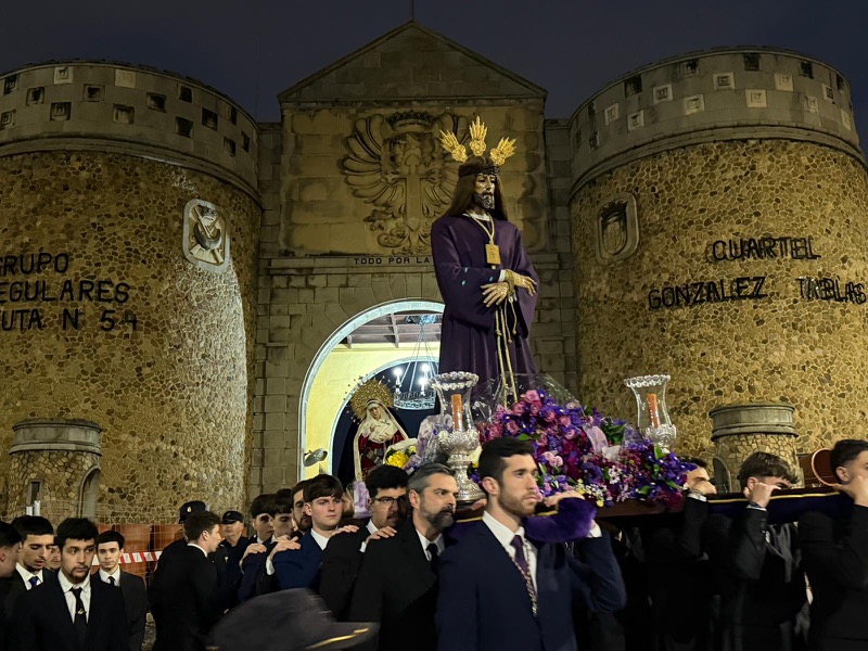 El Cristo de Medinaceli, Señor de Ceuta, ha cumplido un año más con la tradición y ha liberado a un preso durante su traslado a la casa de hermandad. Una cita en la que ha estado acompañado por cientos de ceutíes en su recorrido.