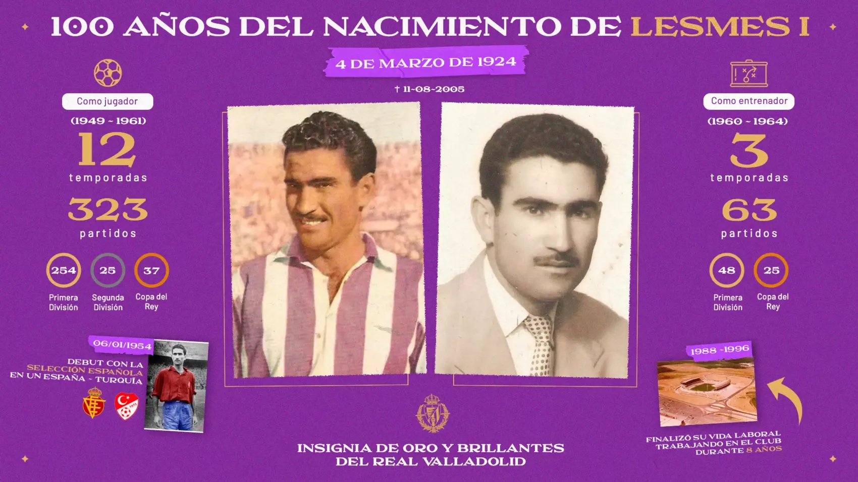 Había jugado ocho temporadas y más de doscientos partidos con la camiseta del Real Madrid, hasta participó en una película, pero Lesmes II siempre quiso regresar a Pucela y al anonimato.