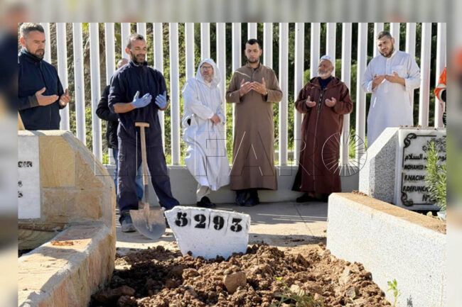 La Funeraria Al-Qadr se ha encargado del traslado del ataúd al cementerio este viernes para procederse a su entierro en una de las tumbas ubicadas en la parte baja del cementerio de Sidi Embarek.