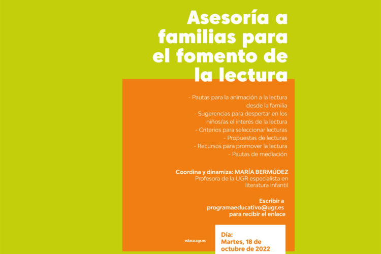 La asesoría a familias para el fomento de la lectura estará a cargo de María Bermúdez, profesora de la Universidad de Granada, especialista en Literatura Infantil.