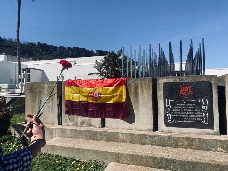 La Unión General de Trabajadores (UGT) de Ceuta ha celebrado este 14 de abril un acto de homenaje a los compañeros y compañeras fusilados tras el golpe militar de 1936, coincidiendo con el 95 aniversario de la proclamación de la II República. La Comisión Ejecutiva del sindicato, junto a otros representantes sindicales y afiliados, se ha reunido en la fosa común del Cementerio de Santa Catalina para rendir tributo a quienes defendieron los valores democráticos y la libertad.