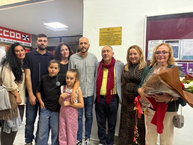 Este sencillo, pero emotivo acto, ha tenido lugar en el edificio sindical. Concretamente, en la planta baja, donde se ha destapado una placa homenaje a Juan Carlos Pérez que ha emocionado a todos los presentes.
