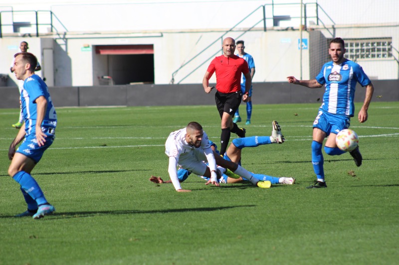 La insistencia caballa, que quería puntuar sobre un equipo muy superior, iba a tener recompensa. En el minuto 57, centro desde la banda de Alain y Adri Cuevas libre de marca conseguía reducir distancias. Ese tanto le daba esperanzas para el tramo final del encuentro. Pero no llegó el empate, 1-2 para el Deportivo.