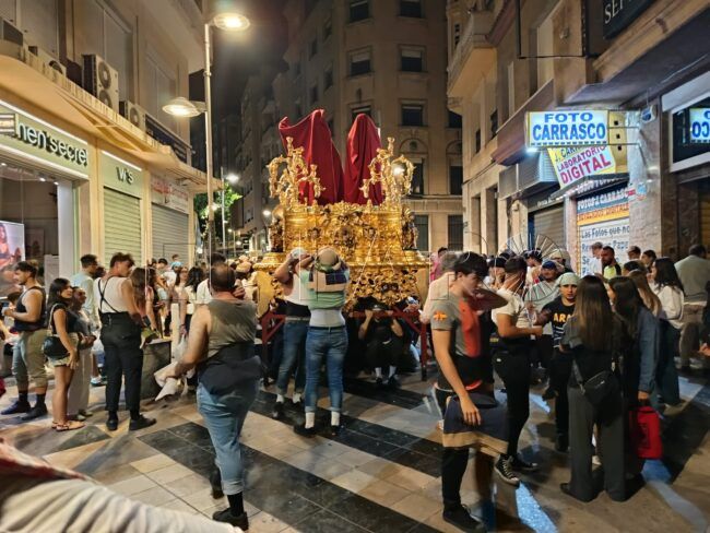 Con devoción y cuidando cada detalle, los costaleros de Nuestro Padre Jesús de la Flagelación se pusieron bajo el paso y recorrieron parte del itinerario que el próximo 13 de septiembre inundará las calles de Ceuta de fe y celebración.