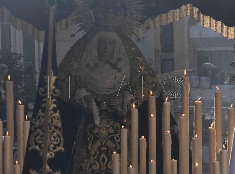 Esta imagen de gloria transformada en dolorosa es obra de Antonio Castillo Lastrucci, Sevilla, en 1948. Fue creada como Virgen del Carmen para la Parroquia de Los Remedios. Tras permanecer años retirada al culto, es adquirida en 1969 por la Hermandad de la Flagelación. Juan Manuel Miñarro renueva su encarnadura en 1991.