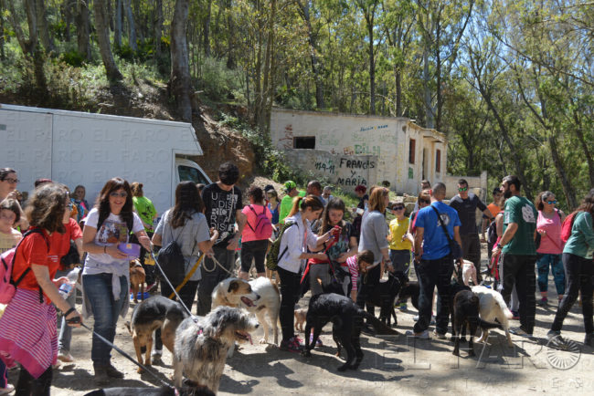 A las 11.00 se iniciaba el recorrido de cuatro kilómetros que, en algunas ocasiones, ha sido tan extenuante para alguno de los perros, que dos de los voluntarios no han dudado en cargar con uno ellos y subir alguna cuesta para que al animal pudiera terminar el recorrido.