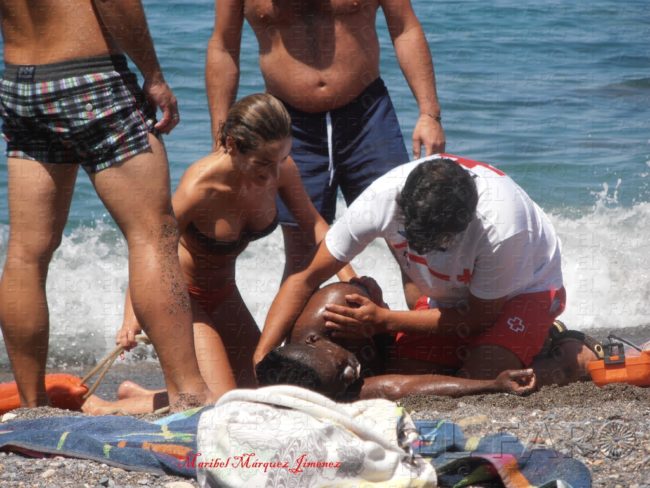 Los hechos ocurrieron alrededor de las cuatro de la tarde, cuanto este polícía que como decíamos más arriba, se encontraba fuera de servicio y estaba pasando la jornada festiva en compañía de su familia en esta popular playa de nuestra ciudad, escuchó gritos de socorro de ciudadanos porque un hombre de origen subsahariano residente en el CETI llevaba tiempo sumergido en el agua.