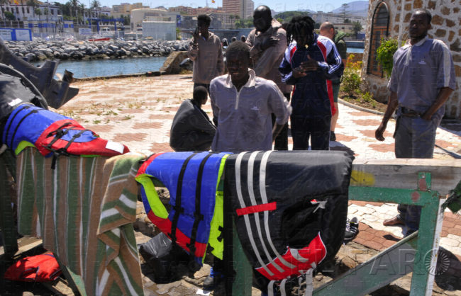 Los subsaharianos fueron trasladados hasta la base del Servicio Marítimo en el Puerto Deportivo, donde les esperaban los agentes del Instituto Armado. A pesar de que una unidad móvil de Cruz Roja acudió a la dársena para atender a los tripulantes ya en tierra, los agentes comunicaron que resultaba innecesario puesto que ninguno presentaba síntomas de hipotermia u otras dolencias que requirieran atención sanitaria. Aunque expresaban su gratitud a través de sus sonrisas, los subsaharianos no disimularon su decepción cuando conocieron que se encontraban en Ceuta y no en Tarifa ya que el objetivo de su periplo era la península. Los inmigrantes que se encuentran al otro lado de la valla, en territorio marroquí, mantienen contacto con sus compañeros a través de llamadas telefónicas y redes sociales, de modo que conocen las limitaciones a la libre circulación si recalan en Ceuta –hasta la resolución de sus expedientes administrativos–.