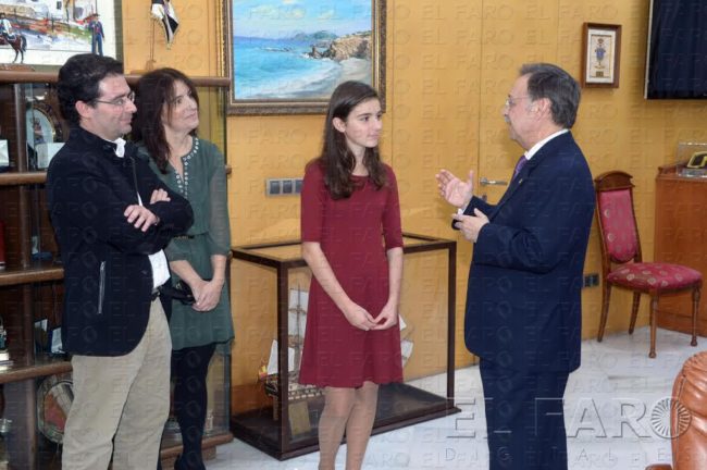 La estudiante, que estudia 1º de ESO, estuvo acompañada por sus padres y profesora, y ayer fue recibida por el presidente de la Ciudad, Juan Vivas, con quien departió durante unos instantes sobre su participación en este certamen. La joven alumna tiene claro lo que significa para ella un monarca y la forma en que quería interpretarlo. “Un rey es un director de orquesta que nos dirige a todos en armonía y cada músico es una comunidad autónoma que toca un instrumento típico de cada una de ella”. Es el trabajo de manualidades que inspiró a esta escolar de 12 años que en futuro se plantea estudiar medicina. María Dolores participará en la audiencia que el rey Felipe VI brindará a los ganadores autonómicos del concurso y que tendrá lugar el próximo miércoles 11 en el Palacio de la Zarzuela a las 12.30 horas. “Para mí es un gran honor conocerlo en persona y estoy algo nerviosa”, aseguraba antes de su audiencia con el presidente Vivas. La que era su tutora el pasado curso, Paqui Castro, asegura que, si bien en un principio los alumnos son reacios a participar, la idea de los premios a recibir y, sobre todo, el hecho conocer al monarca español, les llega a incentivar sobremanera. “Les ilusiona mucho conocerlo. La figura del rey les impresiona y eso es un incentivo para ellos. Ya me han pedido fotos de la visita a la Zarzuela y están muy ilusionados”, añade la docente. La Fundación Orange patrocina este concurso escolar, organizado por FIES (Fundación Institucional Española), y en el que participan miles de alumnos de 3º, 4º, 5º y 6º de Educación Primaria y de 1º y 2º de Enseñanza Secundaria Obligatoria, ESO, de centros educativos de toda España. El objetivo del concurso es que los escolares españoles se acerquen al monarca y la Corona y conozcan el papel que la Constitución reserva a la primera de las instituciones españolas. Los ganadores de cada comunidad autónoma visitan a su Majestad el Rey en Audiencia, junto al vencedor de Educación Especial a nivel nacional.