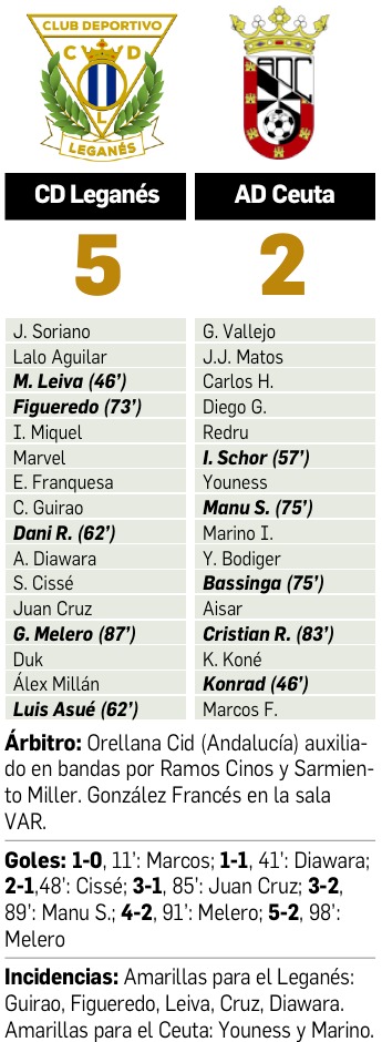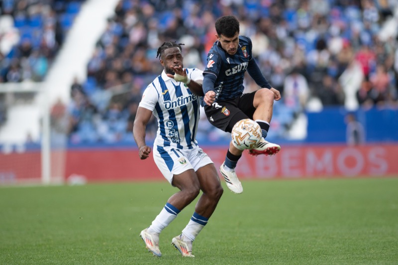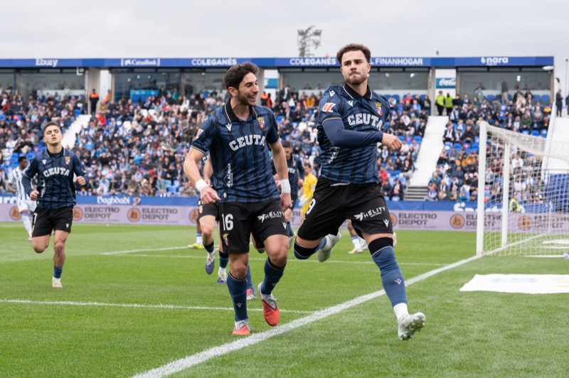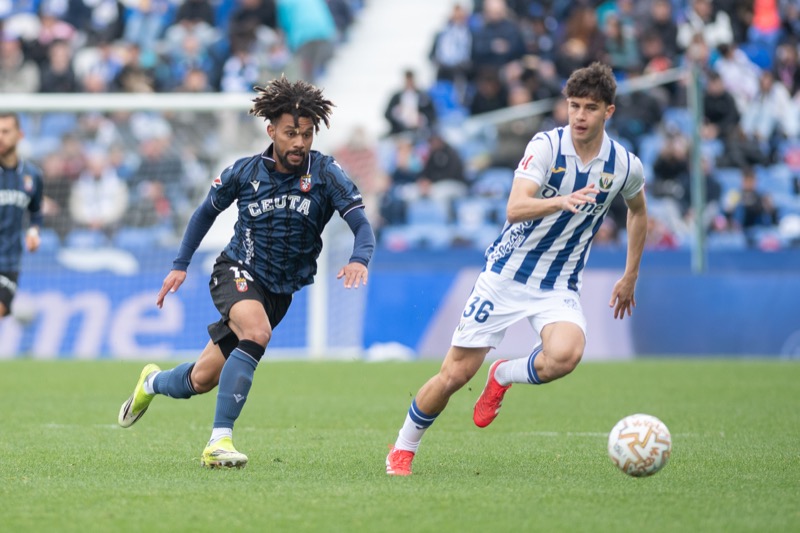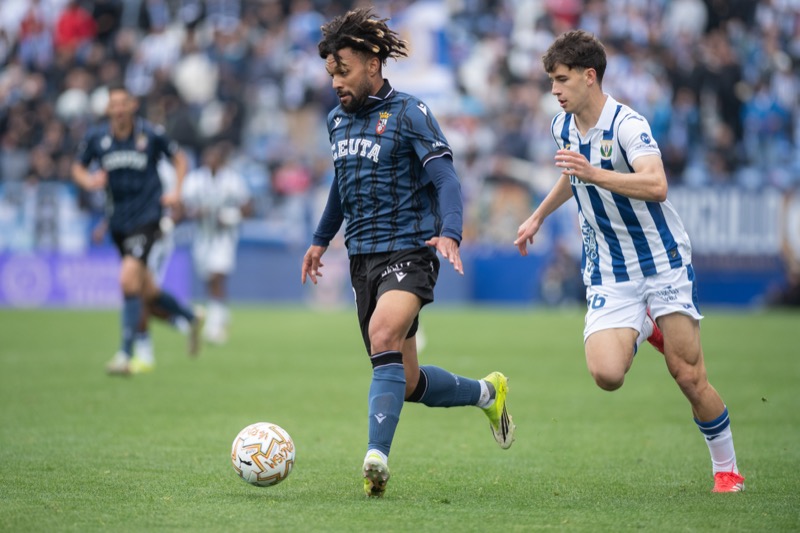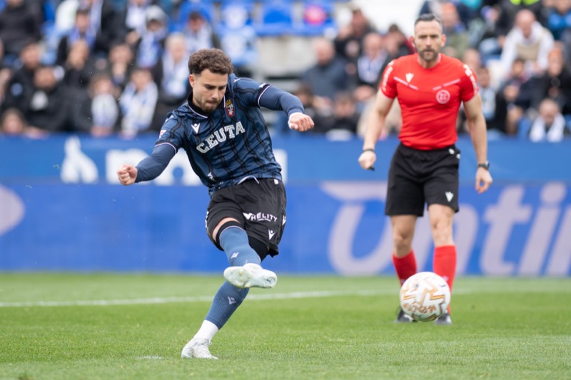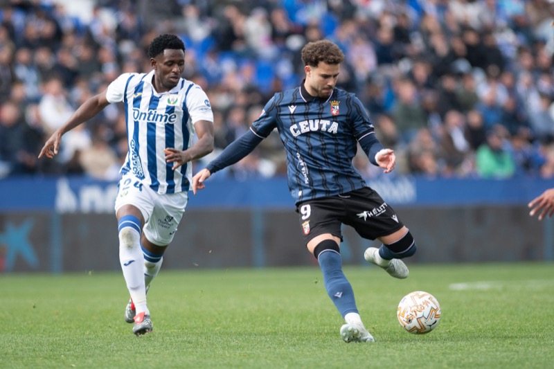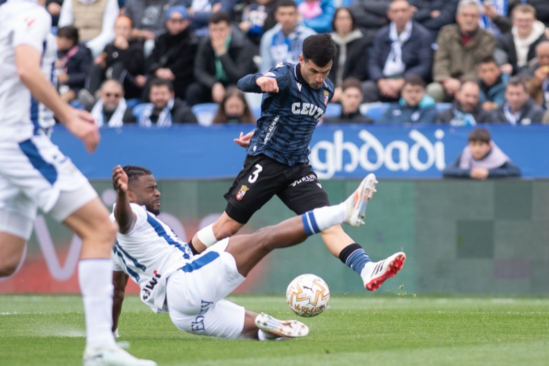 Llegado el minuto 40, el Ceuta tuvo una carambola en área blanquiazul que pudo haber resultado en el segundo gol. Cayó un rechace a Redru, que es zurdo, y no pudo darle de primera. Resbaló y el Leganés salió al contraataque.
