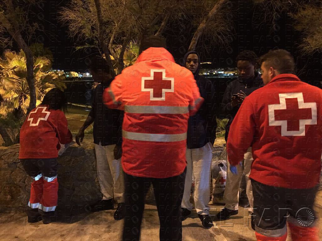 Un total de 18 inmigrantes han llegado hace unos minutos en una patera y han sido atendidos por el Equipo de Respuesta Inmediata en Emergencias (ERIE) de Cruz Roja.