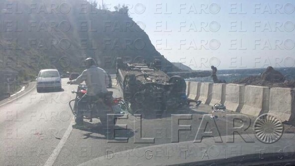 El coche quedó con las ruedas hacia arriba, por lo que se tuvo que maniobrar para devolverlo a su estado inicial y poder retirarlo de la carretera. En la maniobra, golpeó contra un quitamiedos ubicado a lo largo de la vía para evitar precisamente que los vehículos puedan salirse de la carretera. Tal y como se aprecia en las imágenes de esta información, el accidente fue bastante aparatoso y durante varias horas la Benemérita tuvo que hacerse cargo del control del escenario del siniestro. Según han informado fuentes sanitarias, ninguno de los ocupantes tuvo que ser trasladado en ambulancia al Hospital.