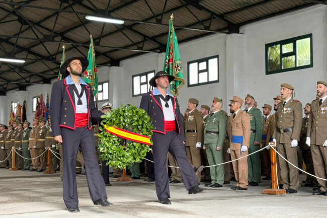 Dentro de este homenaje, se ha procedido al depósito de una corona de laurel por parte de Manuel Sánchez de Alcázar García y del coronel jefe de la ULOG 23, Juan Ricardo Sánchez González.
