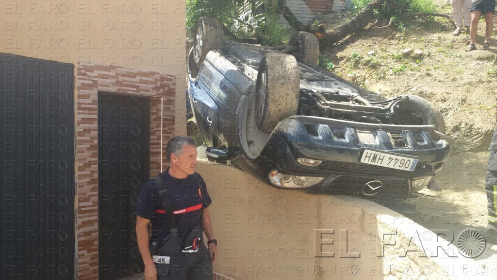 Sin embargo, un fallo de conducción por parte de la persona que iba al volante llevó a que el vehículo cayera por un terrapén que se encontraba allí. Por lo visto, el cambio de marcha del todoterreno se encuentra justo al lado del volante y entonces en vez de meter la primera se equivocó y puso la marcha atrás, al acelerar se despeñaron dando varias vueltas de campana y quedando con las cuatro ruedas hacia arriba como se observa en las fotografías. Lo cierto es que a pesar de lo aparatoso del accidente los ocupantes nada más que sufrían lesiones leves cuando fueron llevados por una ambulancia hasta los servicios de urgencia del Hospital Universitario. En el lugar de los hechos se presentaron agentes de la Policía Local que fueron los encargados de la realización del atestado y tuvieron que llamar a una dotación del Servicio de Extinción de Incendios para que procedieran a colocar nuevamente el todoterreno en posición normal, como así lo hicieron.