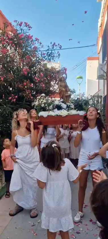 Vestidos de blanco, han partido desde el local de la Asociación de Vecinos de Loma del Pez para protagonizar un emotivo recorrido en el que no ha faltado el acompañamiento musical y que ha sido sorprendido por una hermosa lluvia de pétalos que todos han sabido agradecer.