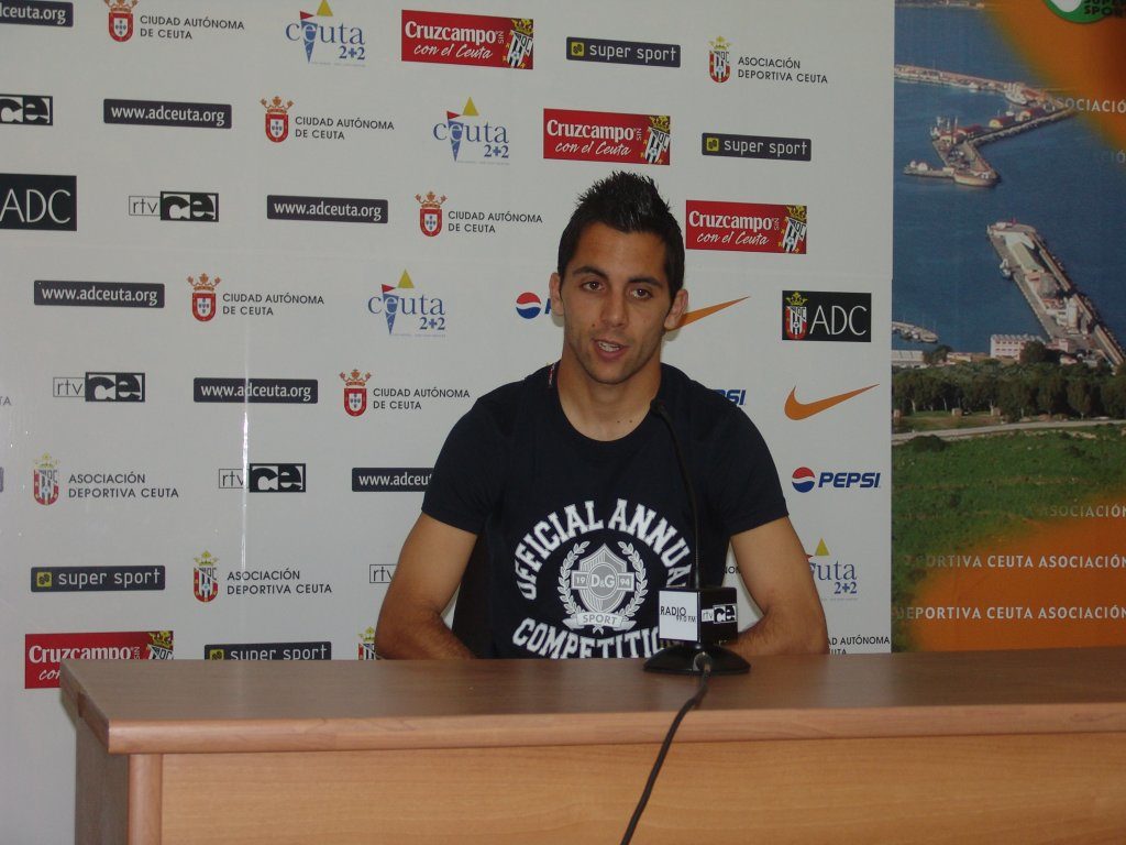 El técnico de la AD Ceuta explicó por qué sitúa al cordobés como lateral derecho a pesar de que llegó al club blanco como medio ofensivo.