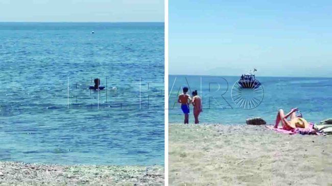La llegada de inmigrantes a las playas de Ceuta está tan normalizada que los bañistas siguen tostándose al sol y disfrutando de sus charlas en la orilla mientras la Guardia Civil trata de persuadir a un sin papeles para lograr interceptarlo.