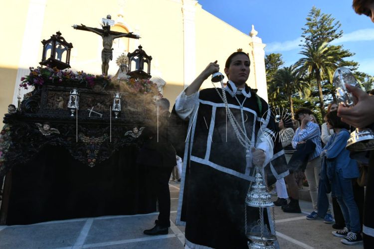 La Hermandad de Nazarenos del Santísimo Cristo de la Vera Cruz y Nuestra Señora del Desamparo prevé iniciar si la lluvia no lo impide su salida procesional con sus túnicas negras de cola con cíngulo de esparto este Lunes Santo desde el Santuario de la Patrona de Ceuta a las 19.00 horas.