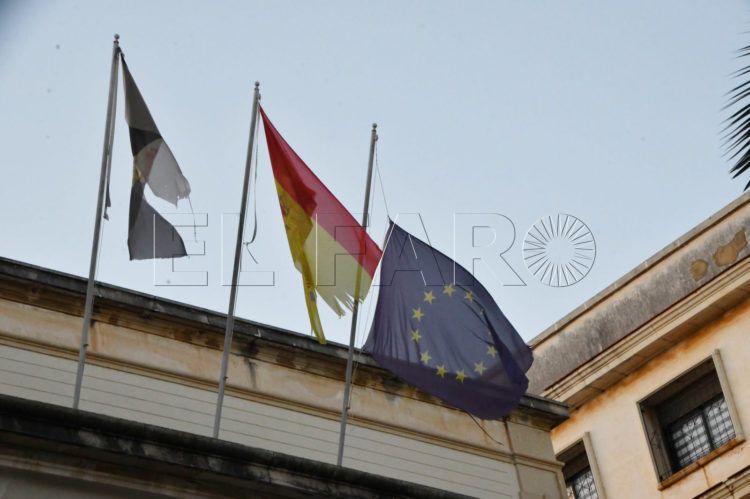 Deberían ser banderas que lucieran de forma adecuada. Pero la antigua sede del Banco de España, que hoy acoge los juzgados de lo Social, Contencioso-Administrativo y Vigilancia Penitenciaria, parece haberse convertido en una desagradable excepción. Especialmente en lo que se refiere a las banderas de Ceuta y la de España.