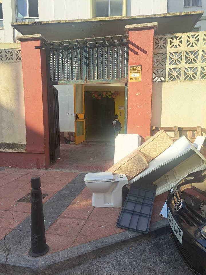 Los pequeños, que accedían por la entrada de Infantil, se toparon con una escena más propia de un vertedero que de un centro escolar. La imagen contraria radicalmente a lo que es la educación que van a recibir en el ‘José Acosta’.