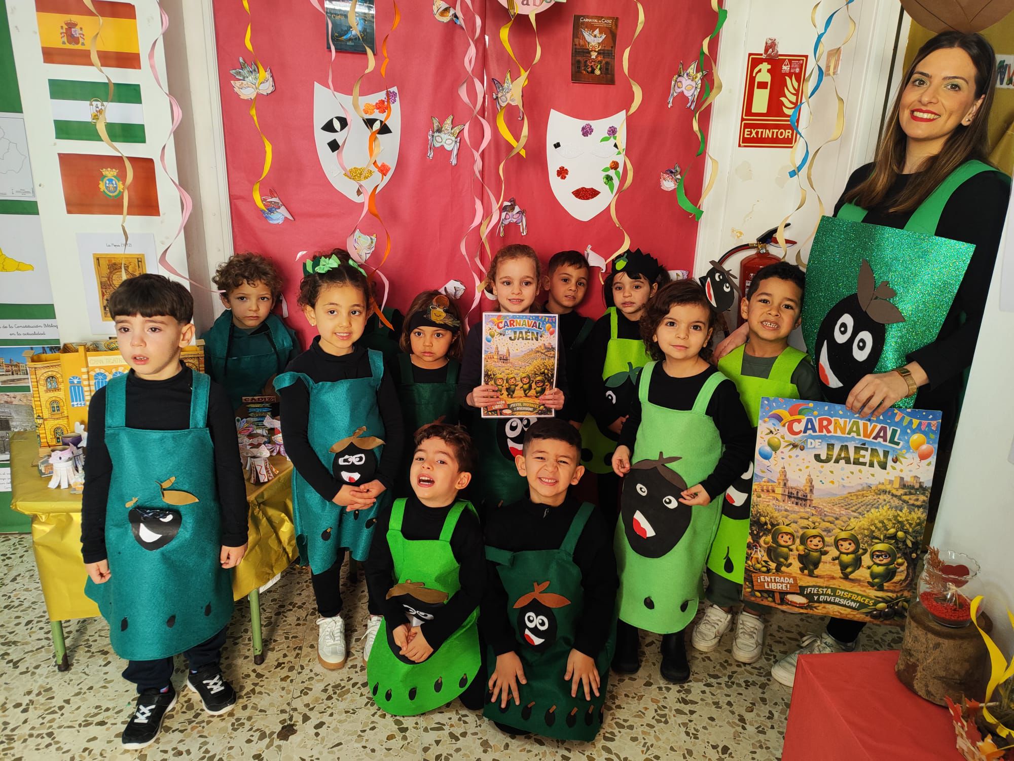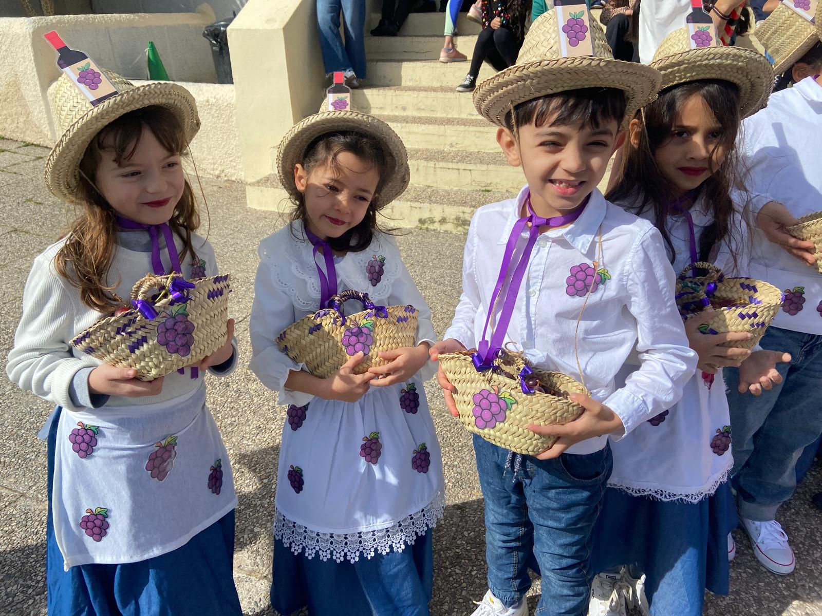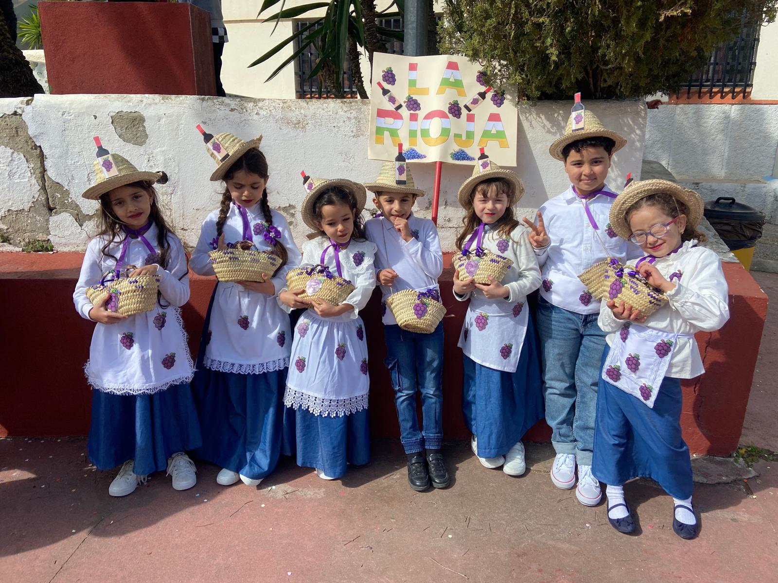 Los más pequeños inauguraron el desfile. 3 años A representó a Córdoba y 3 años B a Granada, mientras que 4 años A viajó hasta Jaén y 4 años B hasta Sevilla. El alumnado de 5 años A se convirtió en Cádiz y 5 años B en Málaga, llenando el ambiente de arte y salero.