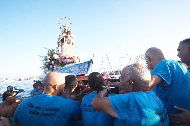 Finalizada la distinguida misa llegó el momento más esperado por todos los devotos: la Virgen del Carmen era adentrada en las aguas que olean a los pies del que fue su templo.