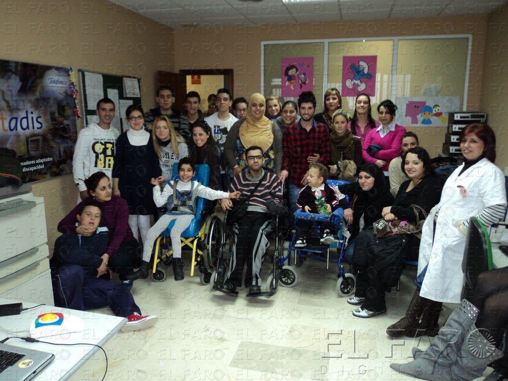 Alumnos del Grado Superior de Técnico de Integración Social del Instituto Abyla visitaron las instalaciones de Cocemfe, conociendo así los recursos técnicos existentes (algunos de ellos de retadis -la red de telefónica de ordenadores adaptados para personas con discapacidad-). En la imagen un momento de la visita.