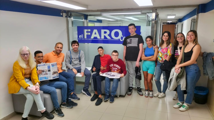 En el marco de una actividad fuera del instituto, este viernes los alumnos de la FP Básica Adaptada del IES Puertas del Campo visitaron las instalaciones de Grupo Faro Ceuta, en donde pudieron conocer de primera mano todas las tareas que componen una edición de nuestro periódico.